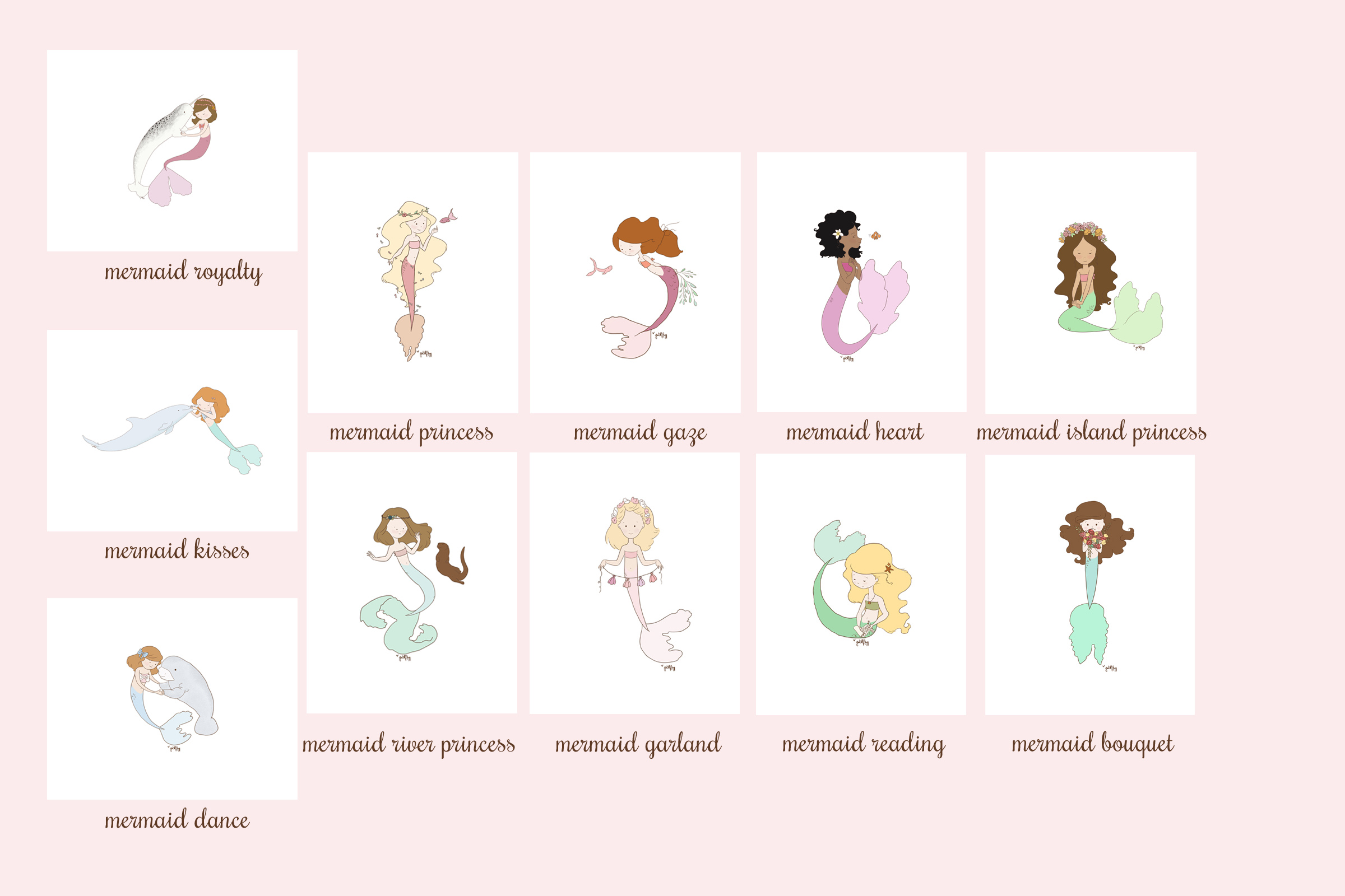 Bundled together for a great deal. Pick out the two, the three, or take them all and save on these 8x10s. Also check out the 5x7 Mermaid Bundle to create an awesome mermaid gallery wall.