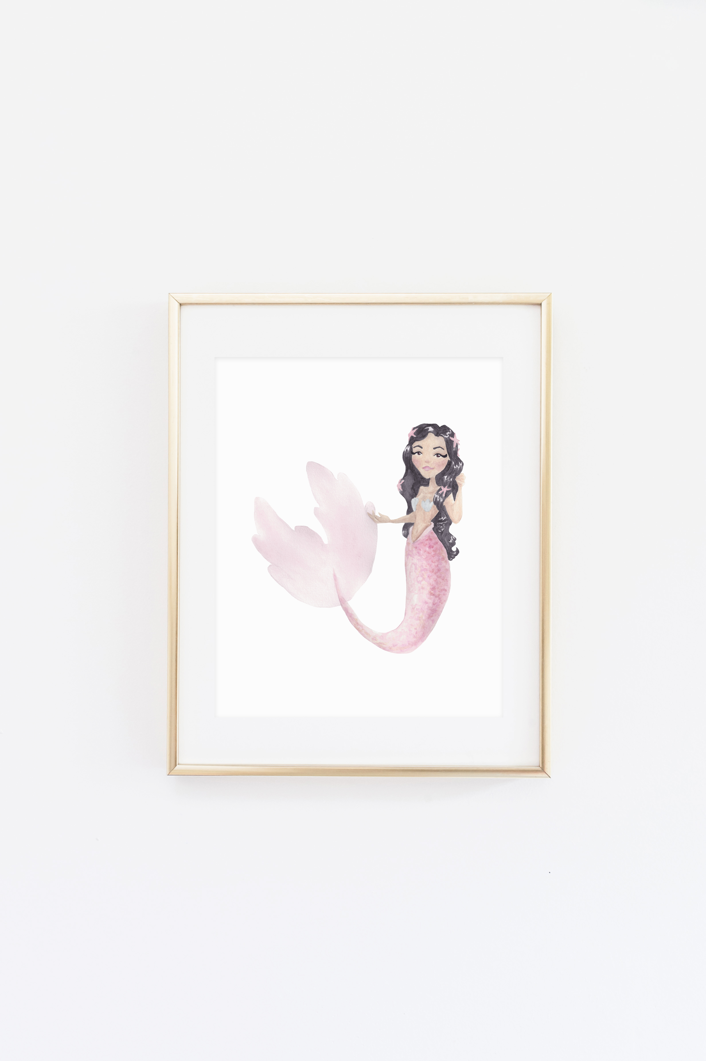 Pink Starfish Mermaid Watercolor Print